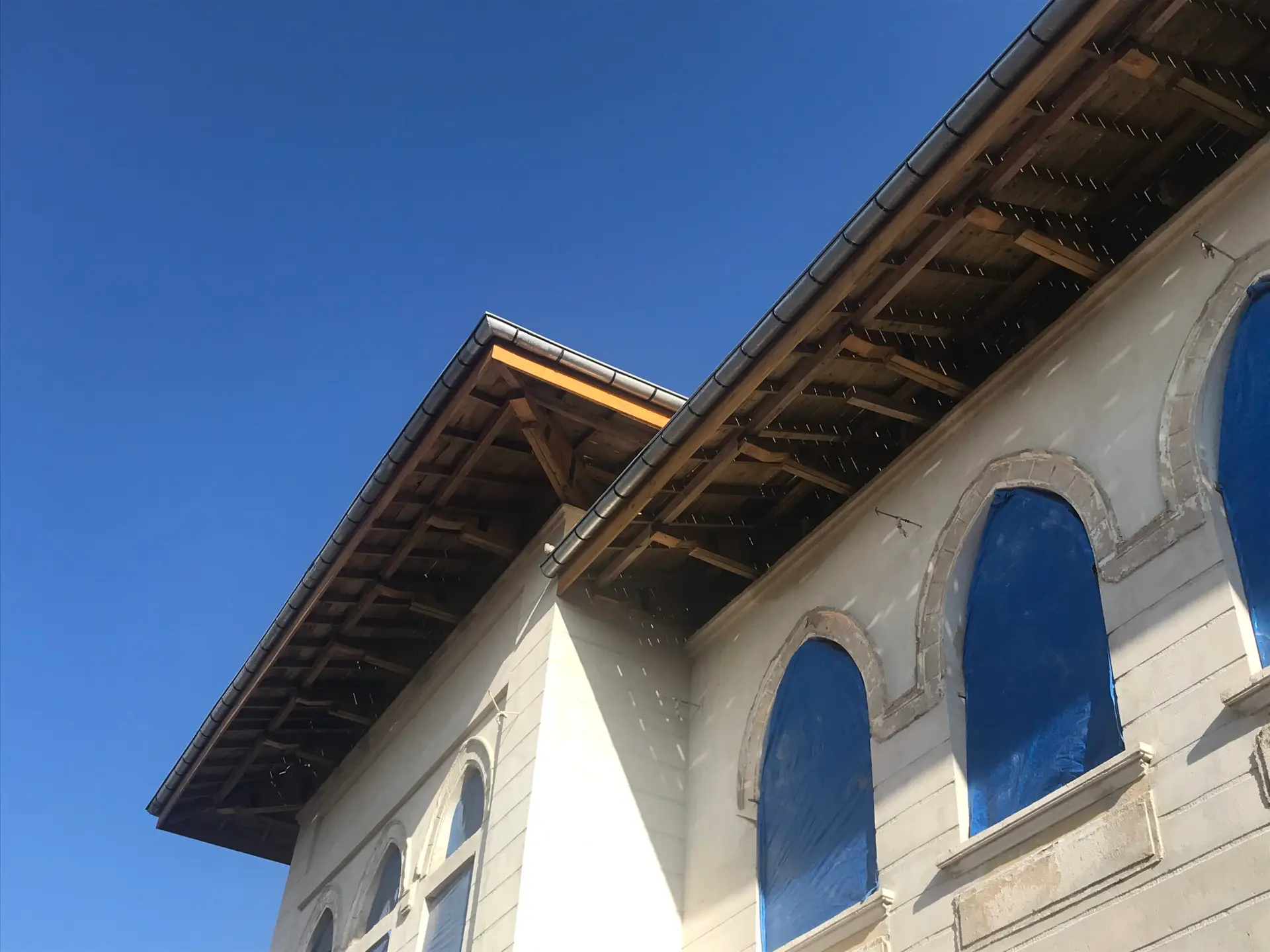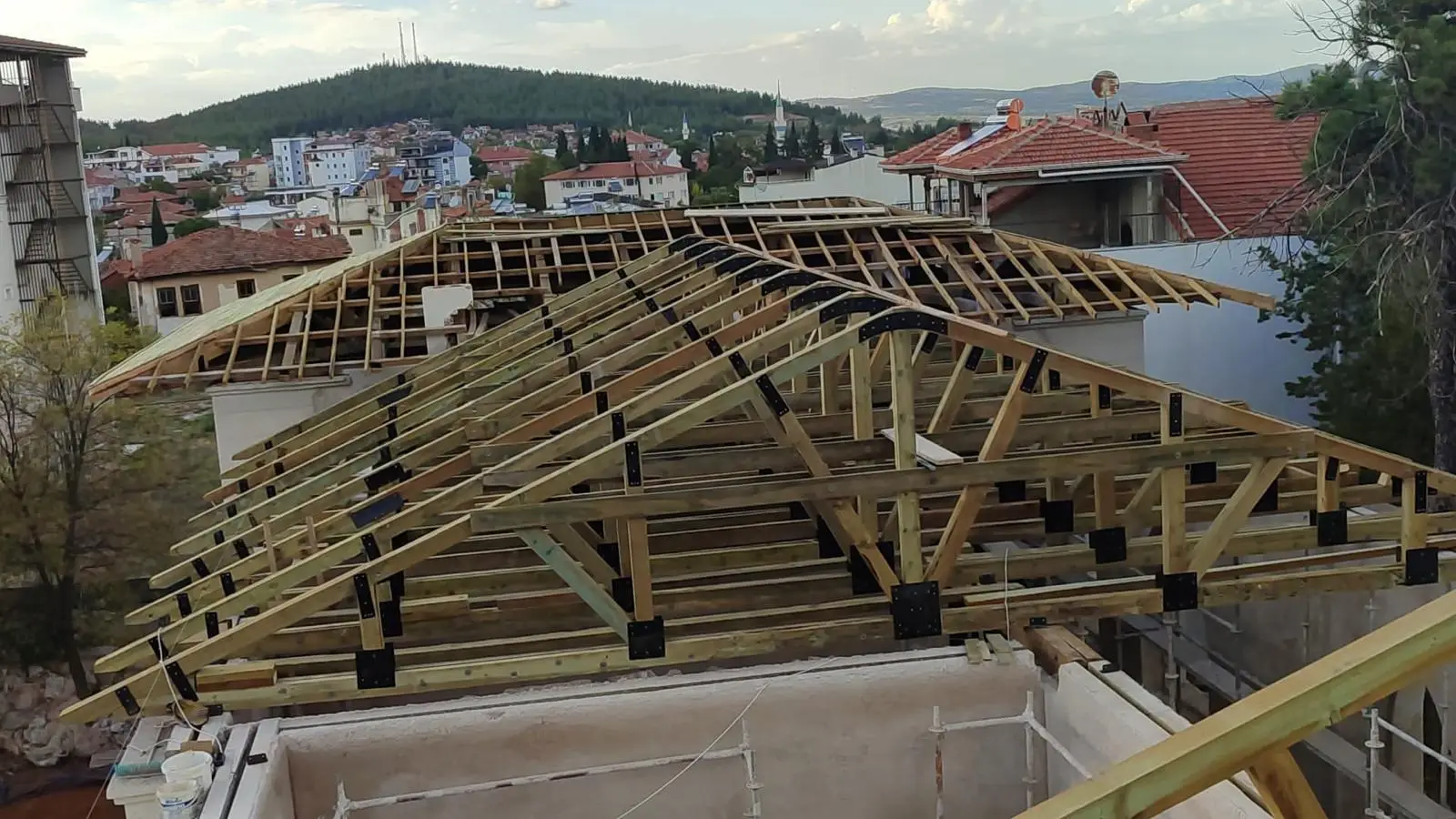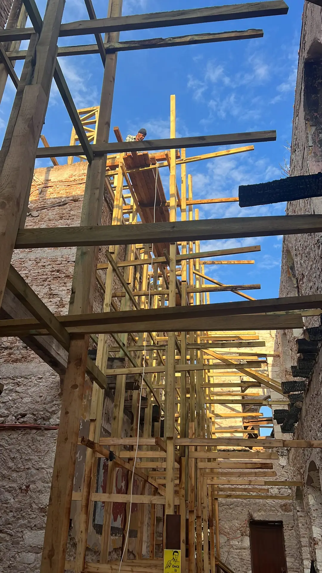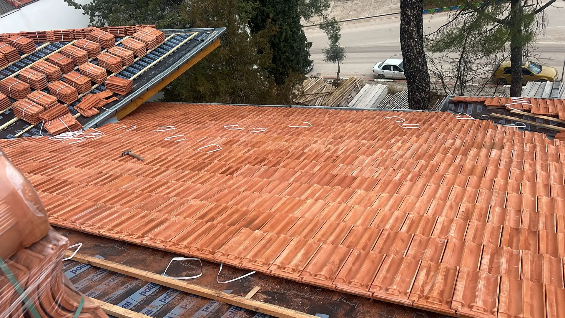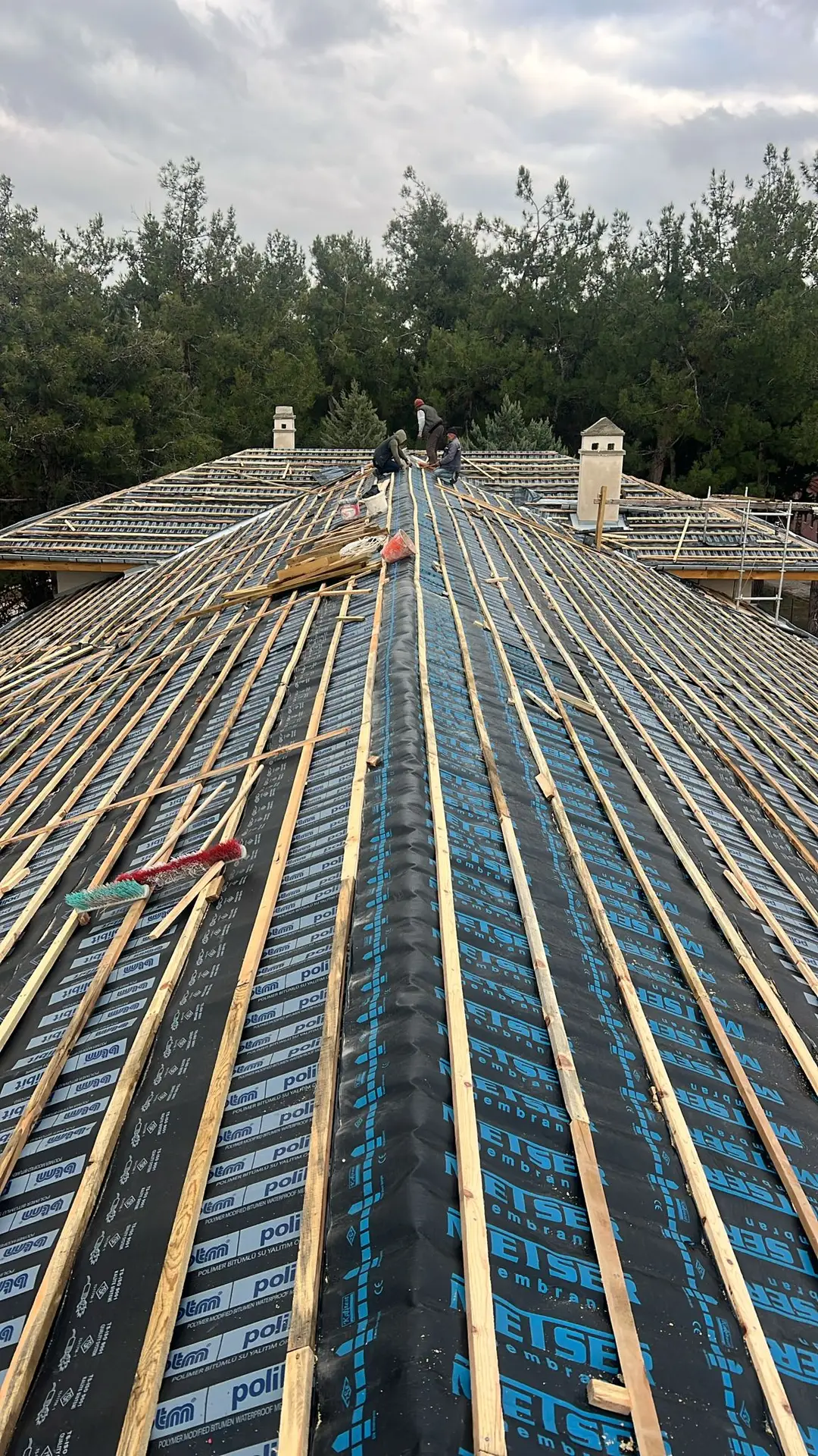 Ardından, paslanmaz lama demirlerle dikiş sistemi uygulanarak duvar köşe birleşimleri güçlendirilmiş, ek olarak çelik mesh ve rabitz tel uygulamaları ile yüzey stabilitesi desteklenmiştir. Yapının korunması amacıyla geçici bir çelik çatı kurulmuş, sonrasında ise özgün formuna uygun şekilde makaslı ahşap oturtma çatı sistemi inşa edilmiştir. Tüm duvar yüzeylerine geleneksel teknikle dolgu sıvası, kaba ve ince sıva uygulamaları gerçekleştirilerek yapı hem statik hem estetik olarak bütünleştirilmiştir.