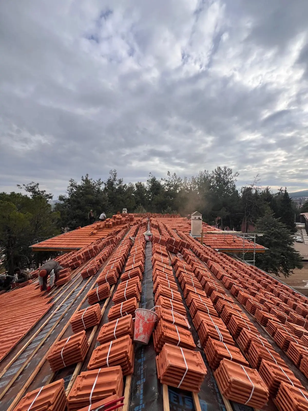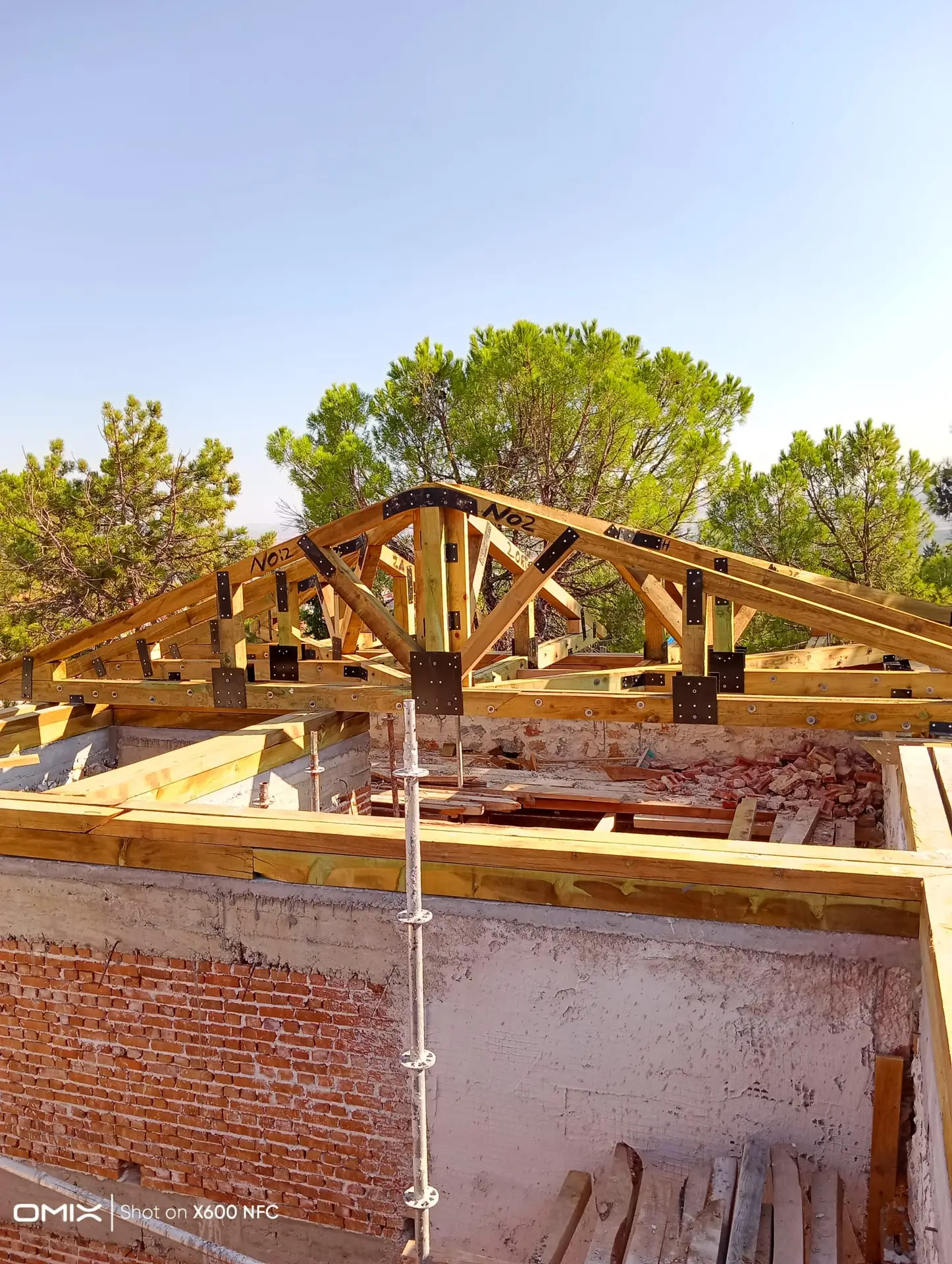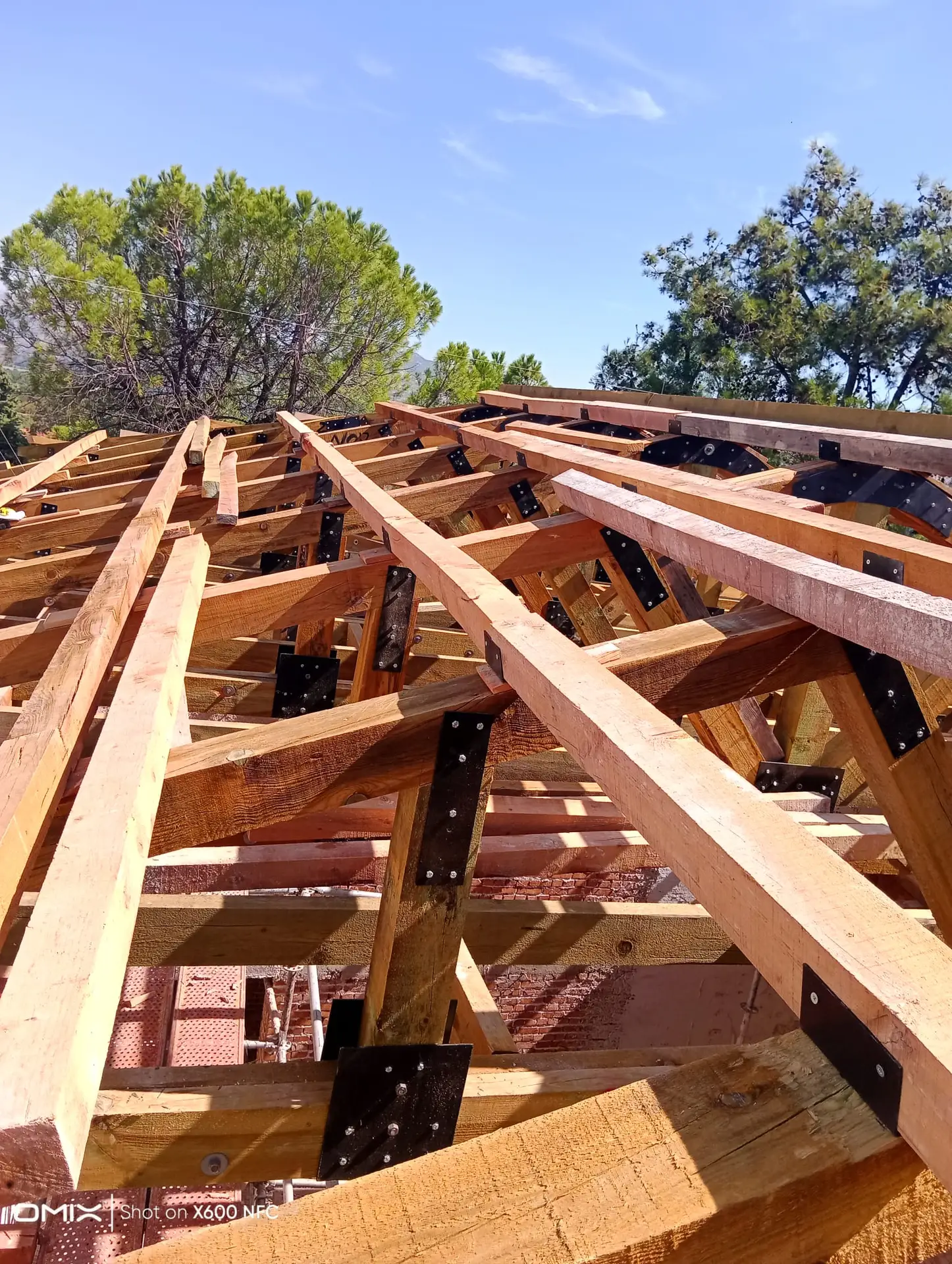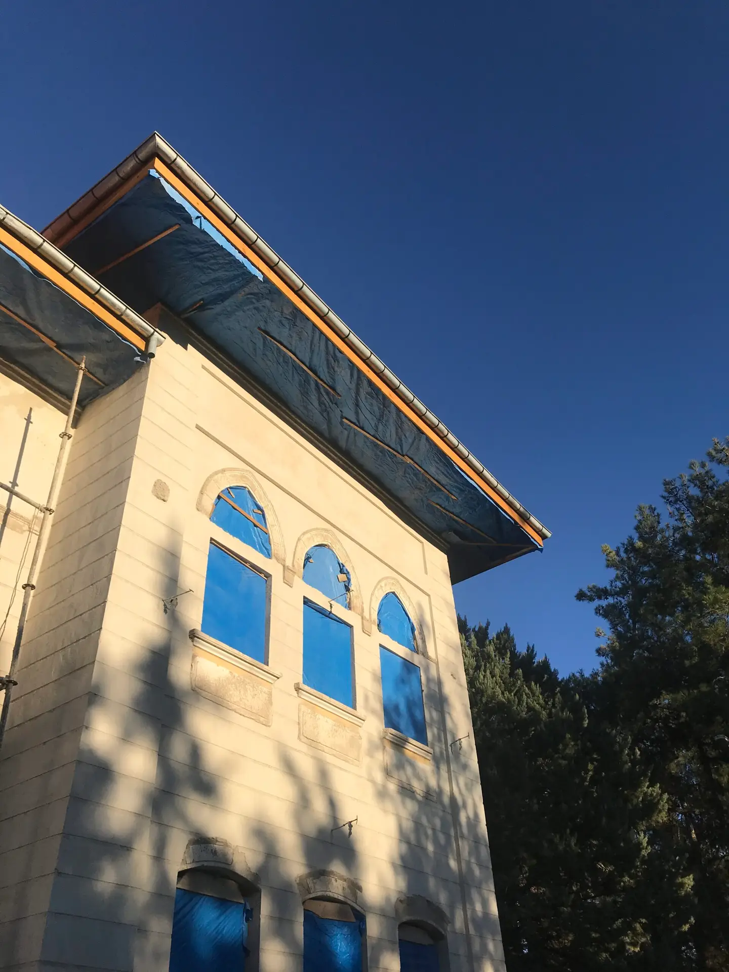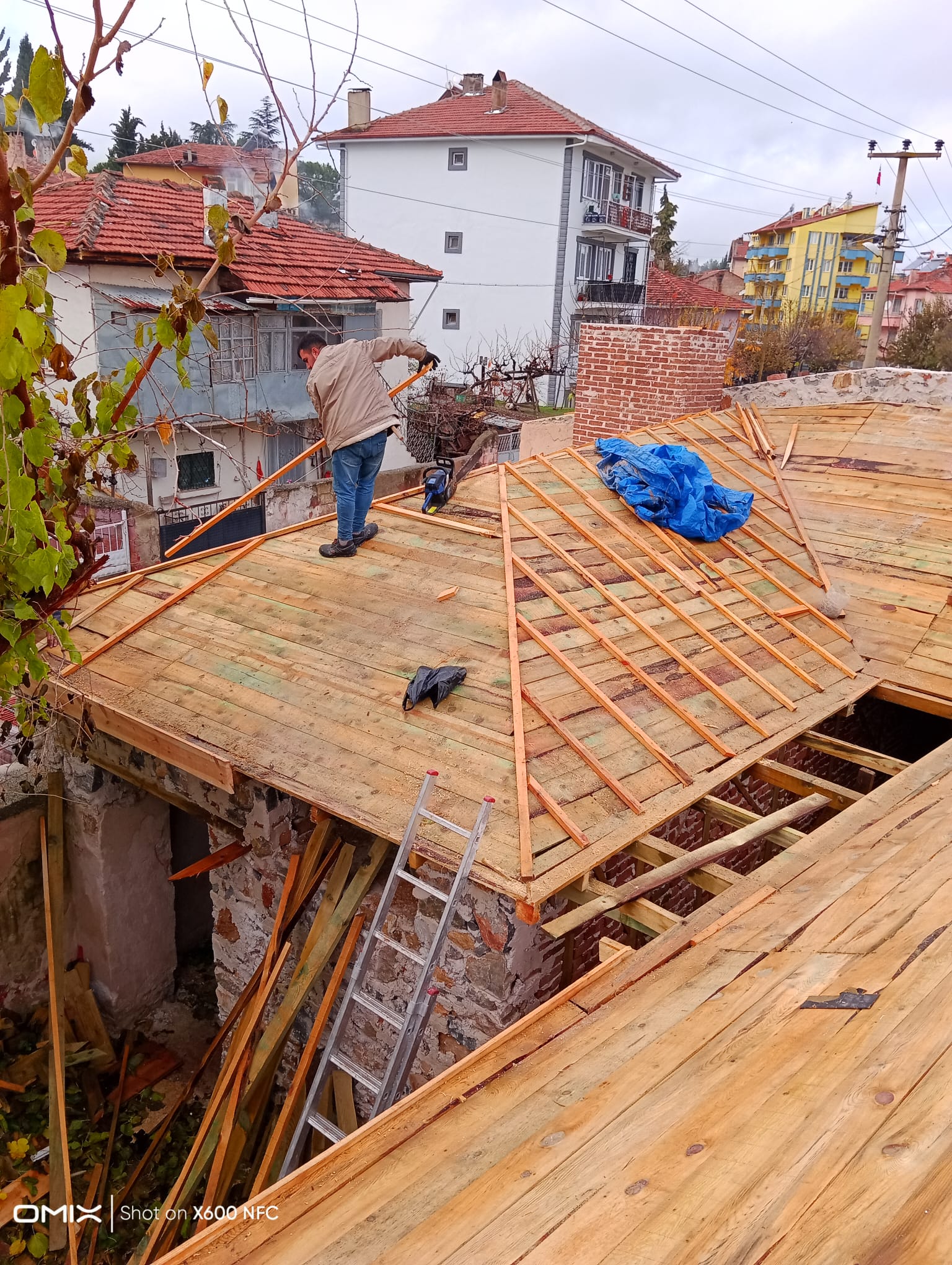 Ardından, paslanmaz lama demirlerle dikiş sistemi uygulanarak duvar köşe birleşimleri güçlendirilmiş, ek olarak çelik mesh ve rabitz tel uygulamaları ile yüzey stabilitesi desteklenmiştir. Yapının korunması amacıyla geçici bir çelik çatı kurulmuş, sonrasında ise özgün formuna uygun şekilde makaslı ahşap oturtma çatı sistemi inşa edilmiştir. Tüm duvar yüzeylerine geleneksel teknikle dolgu sıvası, kaba ve ince sıva uygulamaları gerçekleştirilerek yapı hem statik hem estetik olarak bütünleştirilmiştir.