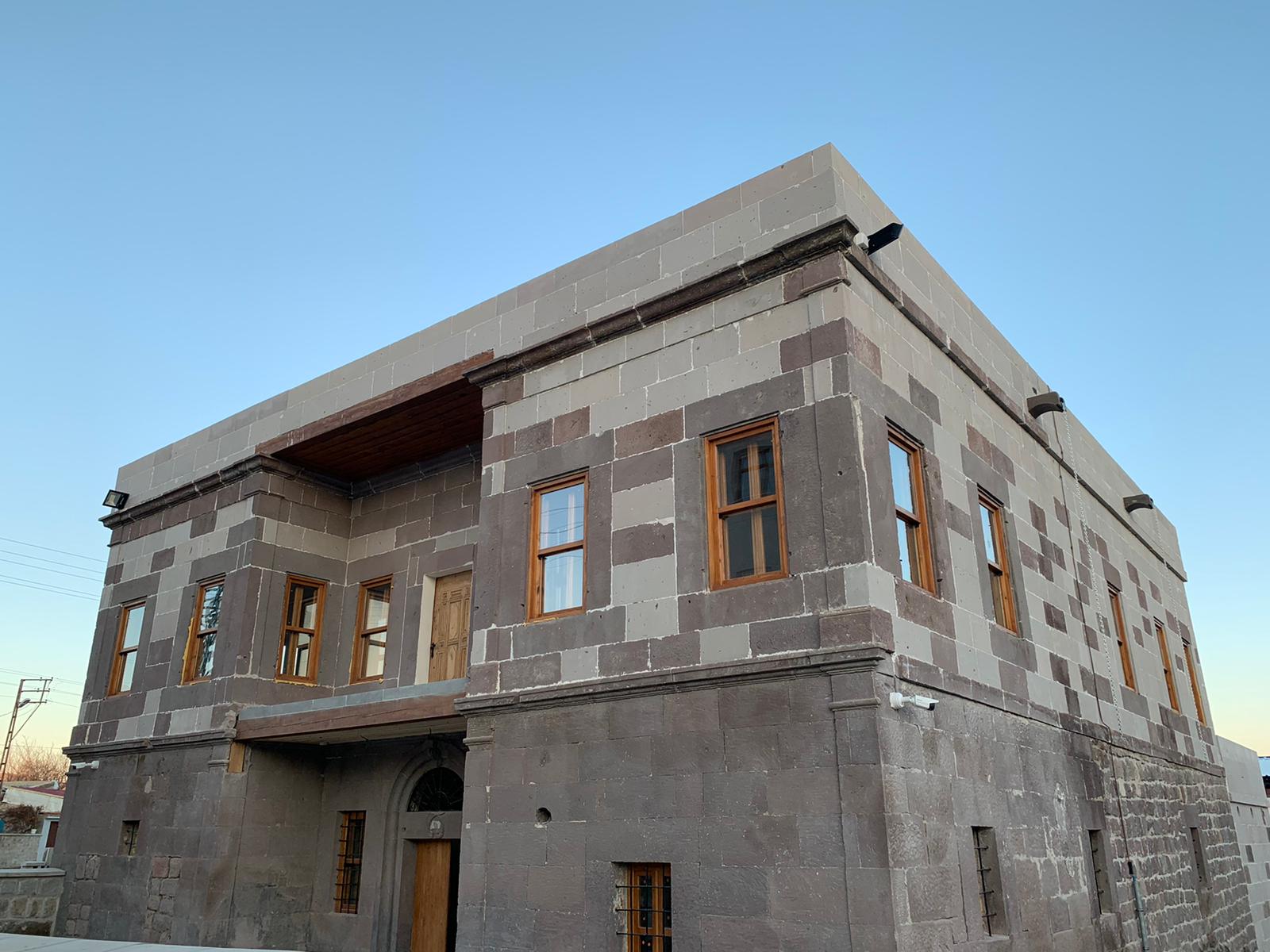 Kayseri Kocasinan ilçesinde yer alan Güneşli Jandarma Konağı’nın restorasyon uygulama işi kapsamında, yapının taşıyıcı duvarlarında kapsamlı bir çalışma gerçekleştirilmiştir. Yapının tüm taş duvarları tek tek belgelenmiş, her taş numaralandırılarak zayıf bölümler sökülmüş ve taşlar özgün sıralamasına göre yeniden örülmüştür. Bu işlem, hem yapısal bütünlüğün sağlanması hem de mevcut tarihî malzemenin korunması açısından titizlikle yürütülmüştür.